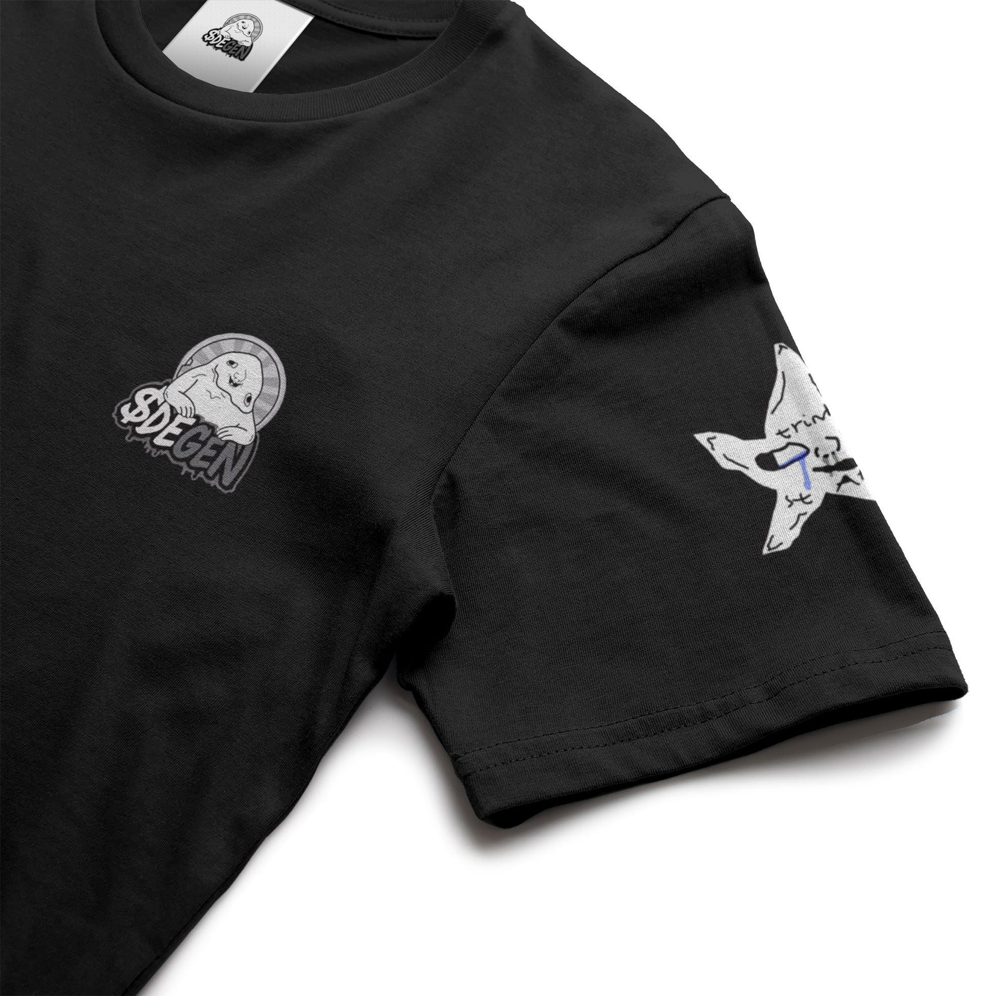 - Front print: Small grayscale $Degen PFP for a clean nod to the brand